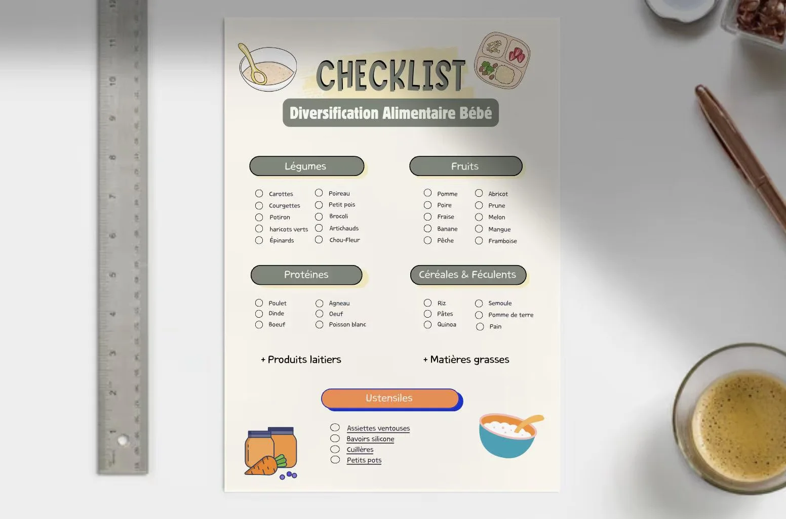 Découvre la checklist ultra pratique pour la diversification alimentaire, dispo dans le shop du blog